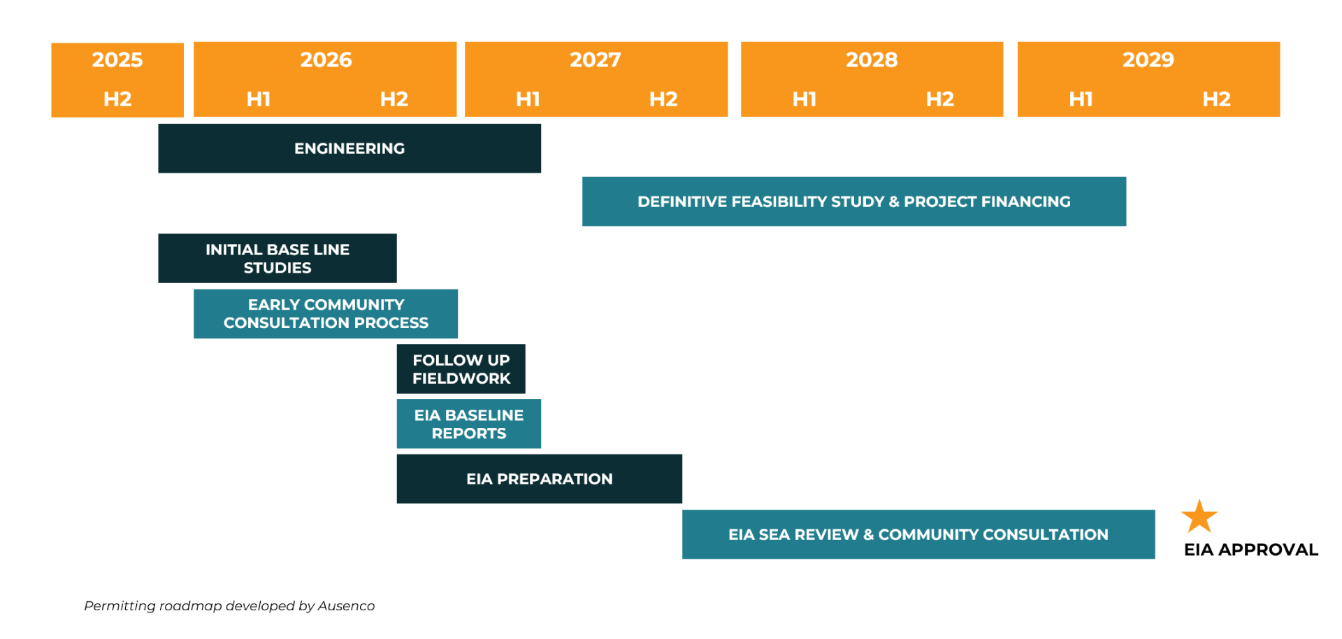 - Ausenco managed and coordinated the work related to the report, reviewed the metallurgical test results and developed PEA-level design and cost estimate for the process plant, general site infrastructure, environmental and economic analysis.